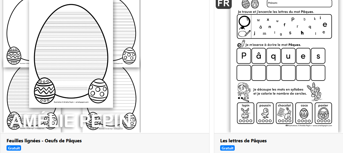Connaissez-vous le site d’Amélie Pépin ? C’est une véritable mine d’or pour les activités FLE ! Il y a une boutique, mais si vous appliquez le filtre GRATUIT, vous trouverez de nombreuses ressources sur tous les thèmes. Pour Pâques, Amélie Pepin propose des coloriages, des jeux de vocabulaire, des exercices de compréhension de lecture, ainsi que des activités ludiques comme des jeux de différences et des exercices pour travailler la prononciation.