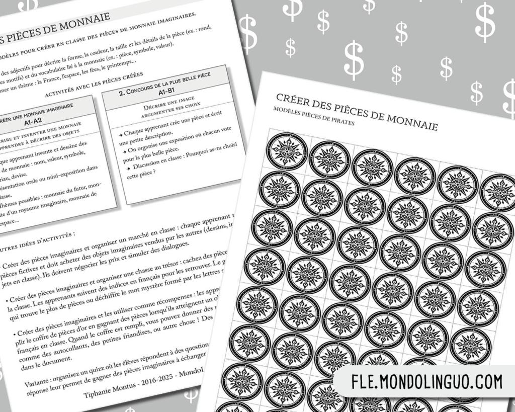 Sur mon site MondoLinguo, je vous propose une activité gratuite sur le blog pour créer des fausses pièces de monnaie avec de nombreuses idées d’exploitation en classe !