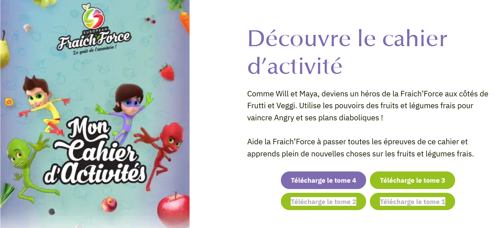 La campagne « European Fraich’Force » est un programme européen de 3 ans destiné à sensibiliser les enfants et leurs parents à la consommation de fruits et légumes frais.