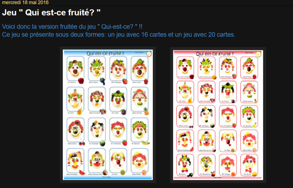 Merci à Amiscol de partager ce QUI EST-CE version fruits !