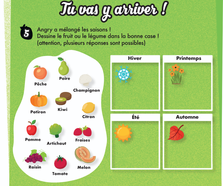Sur le site, vous pouvez télécharger des cahiers d’activités sur le thème des fruits et légumes avec des activités adaptables pour le FLE ! Les cahier commencent avec des BDS et puis proposent de nombreux jeux de vocabulaire, des sudoku, des mots fléchés, des mots croisés…